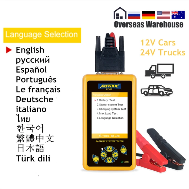 AUTOOL BT460 Battery Tester Car Digital Diagnostic Tool Analysis Instruments Lead-acid CCA AGM GEL Auto Battery Analyzer 12V 24V