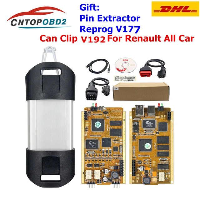 For Renault Can Clip V190 Gold Full Chip CYPRESS AN2131QC AN2131QC Car Diagnostic Programing For 1998-2019 Pin Extractor+Reprog
