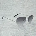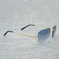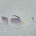 Vintage Rimless Square C Wire Sunglasses Men Oculos Shade Diamond Cutting Metal Frame Oval Gafas Women for Beaching Driving